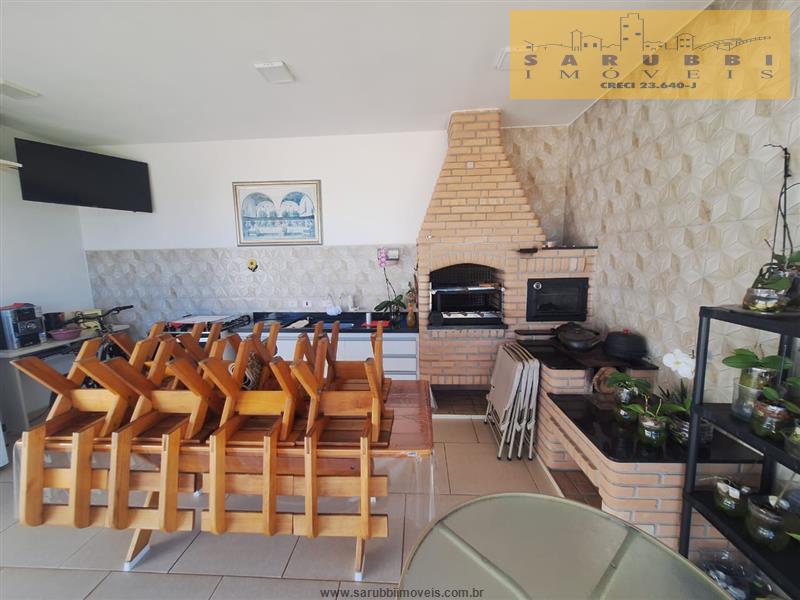 -Área gourmet, com pia com gabinete, mesa de madeira com 8 cadeiras, fogão a gás, trio mineiro, com churrasqueira, forno e fogão a lenha.